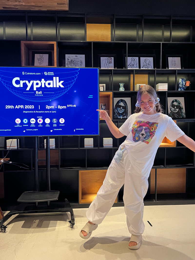 Speaker — CRYPTALK 2023, invited by Coinstore & EDNS Domains (What Makes NFTs Valuable: a 13-year-old’s view) | Bali, Indonesia | May 2023