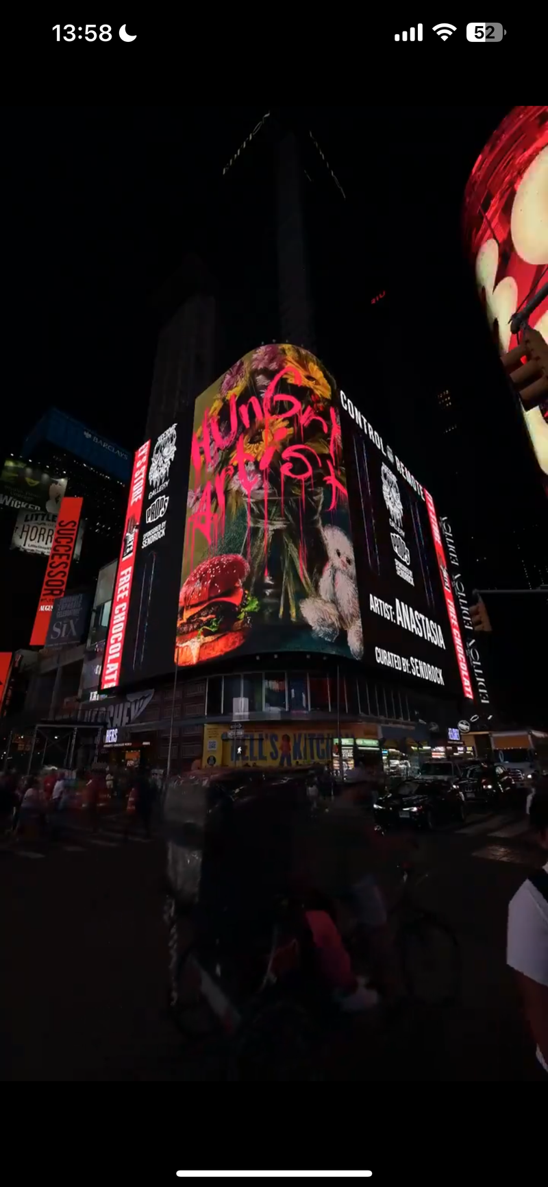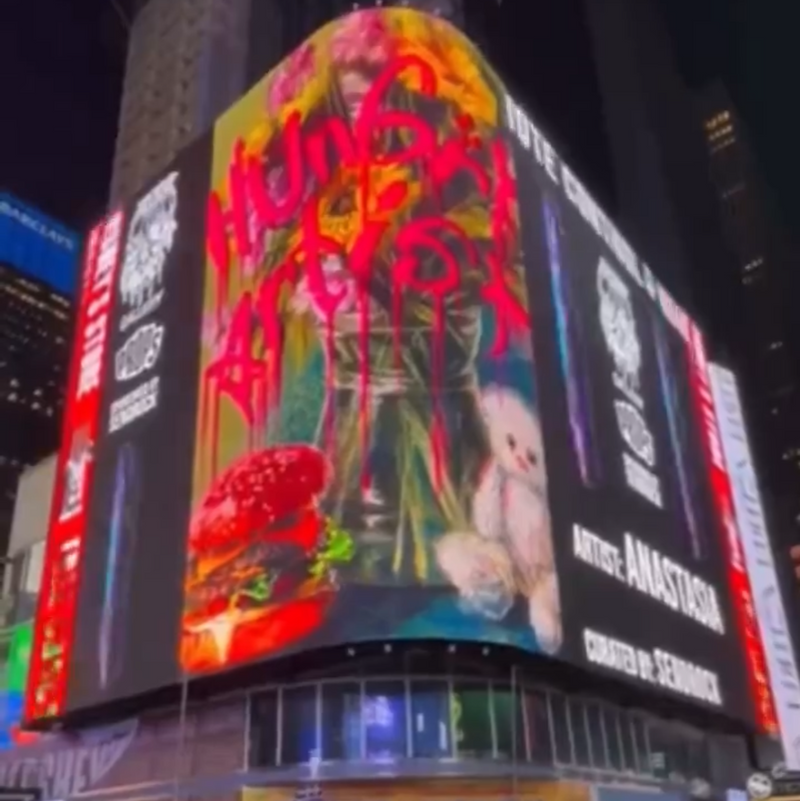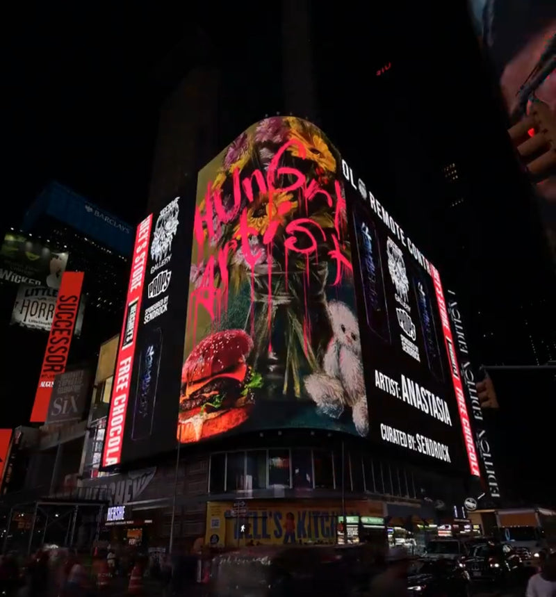 Hungry Artist — Winning Artwork, Superchief Gallery & Remote Control Contest (curated by Sendrock), displayed on the largest Times Square Billboard, once per hour, 18 hours/day, for a week | US | July–August 2024