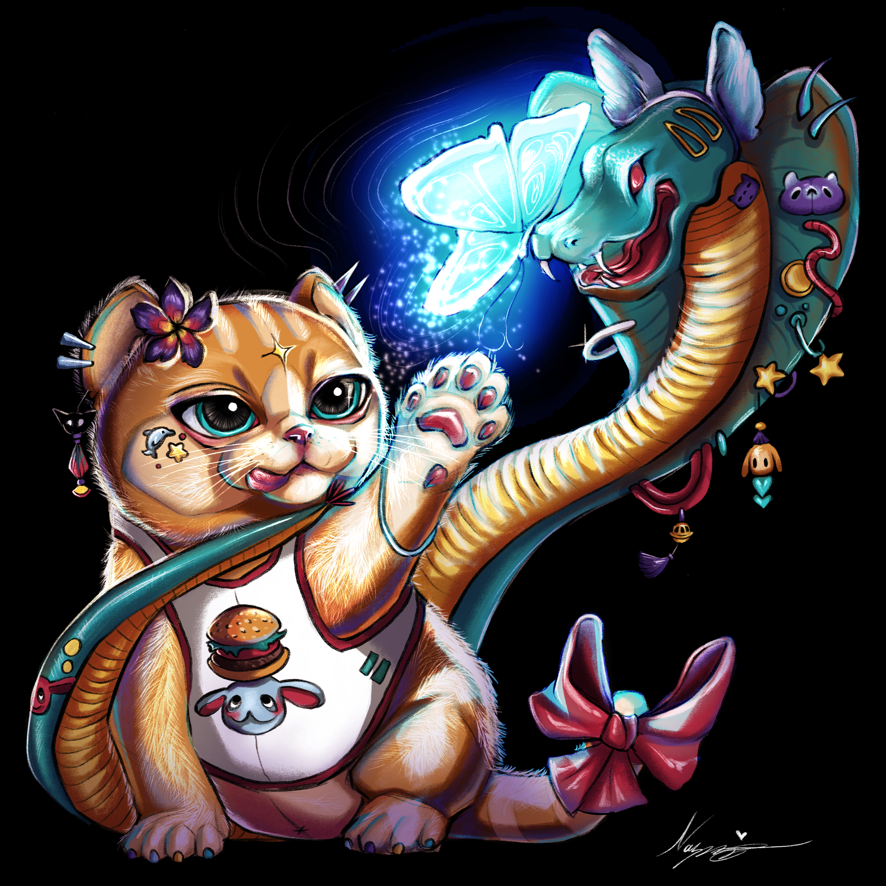 A collaborative artwork between Anastasia NFTart and Sneketoshi: Curious Soapy Cat