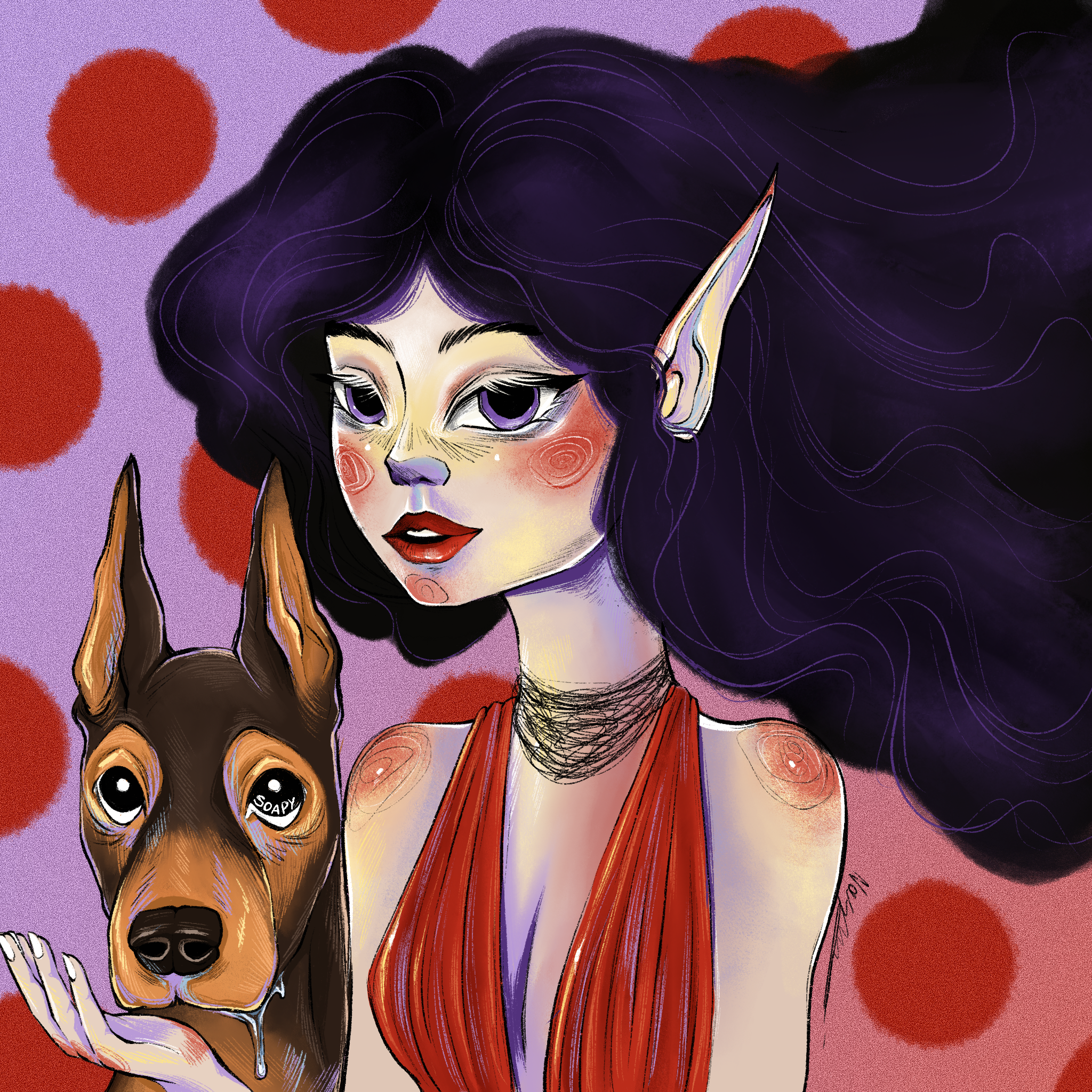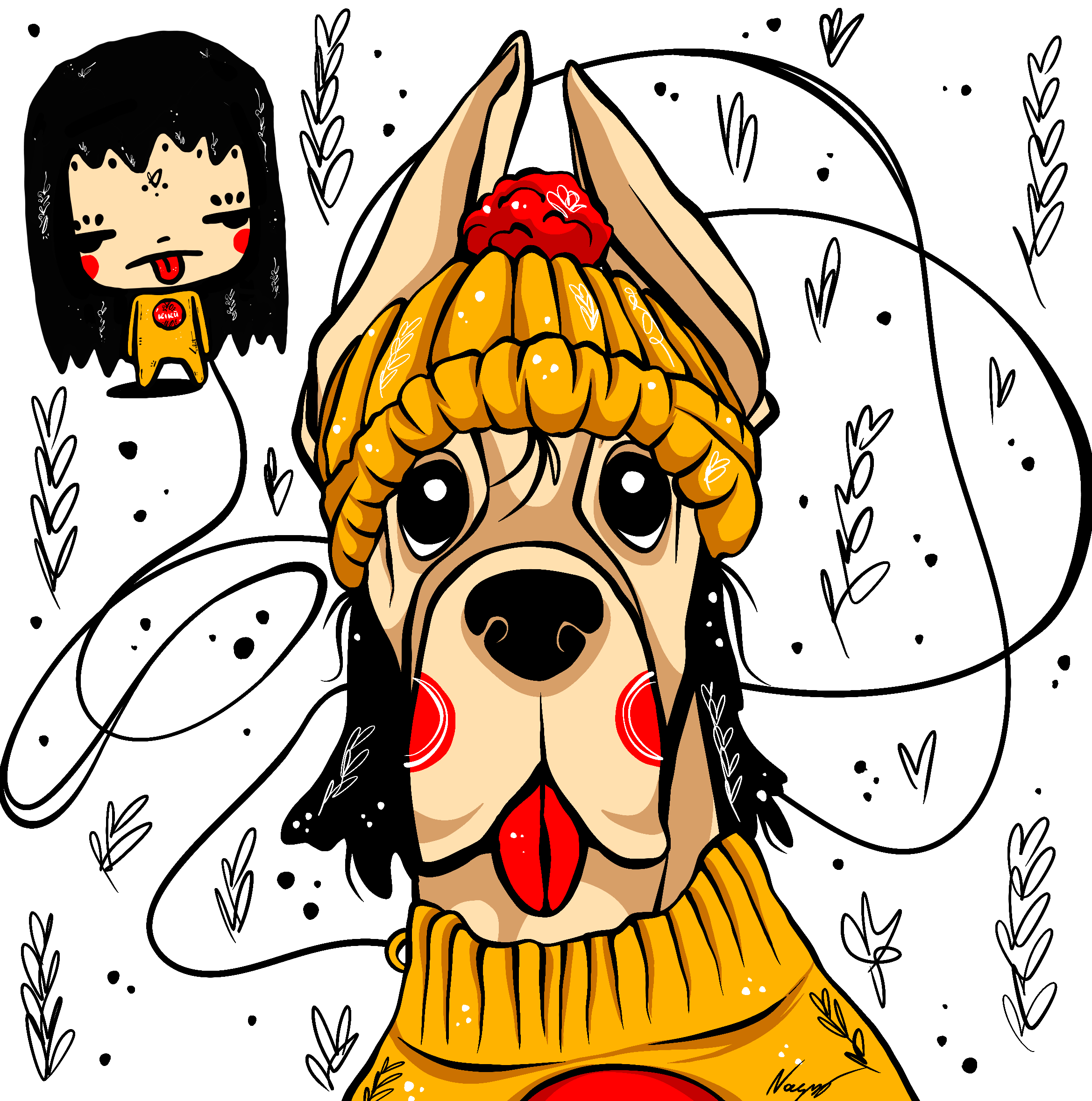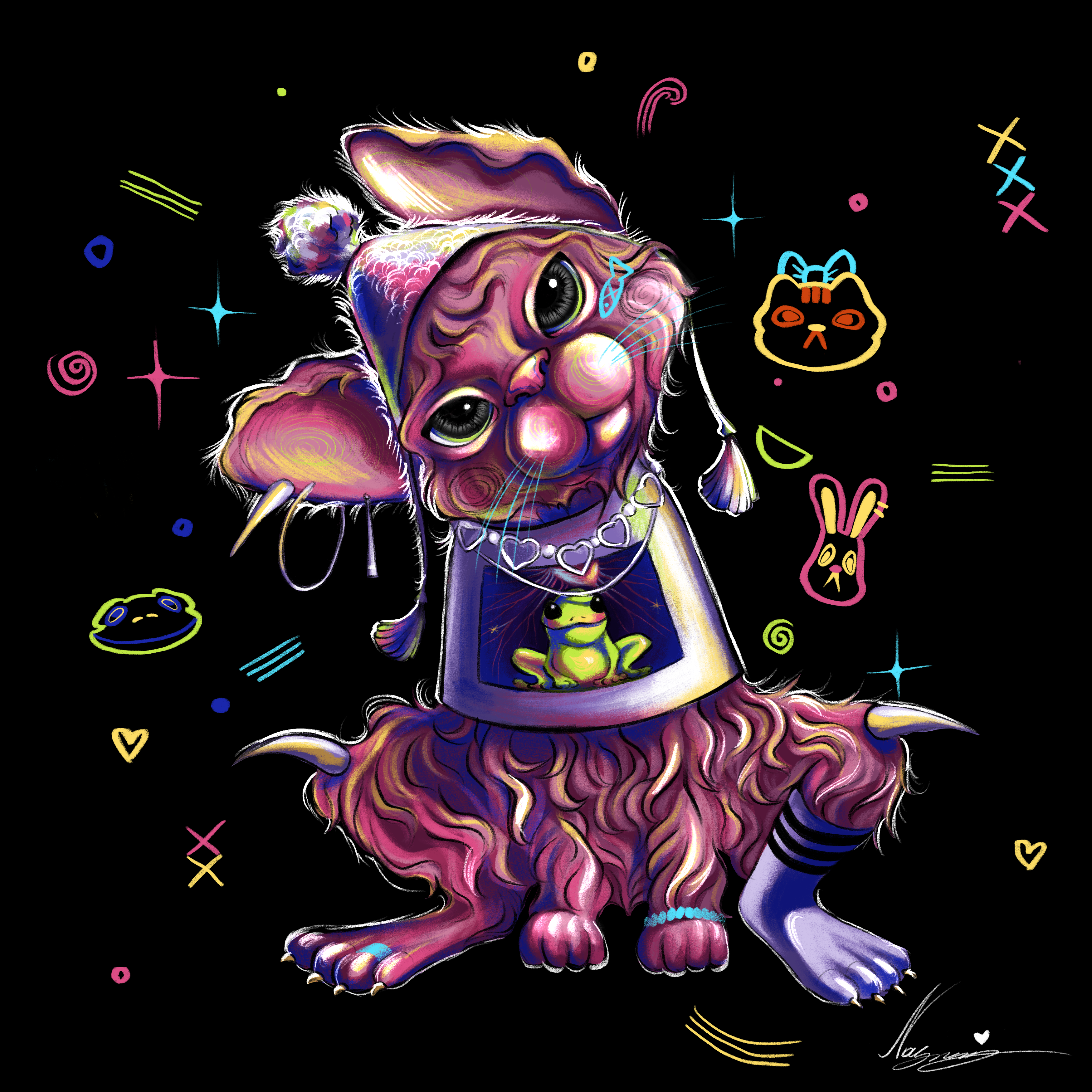 A collaborative artwork between Anastasia NFTart and Sabet: Soapy Dog NYC 2022 Anastasia NFTart x Kiku's World by Sabet