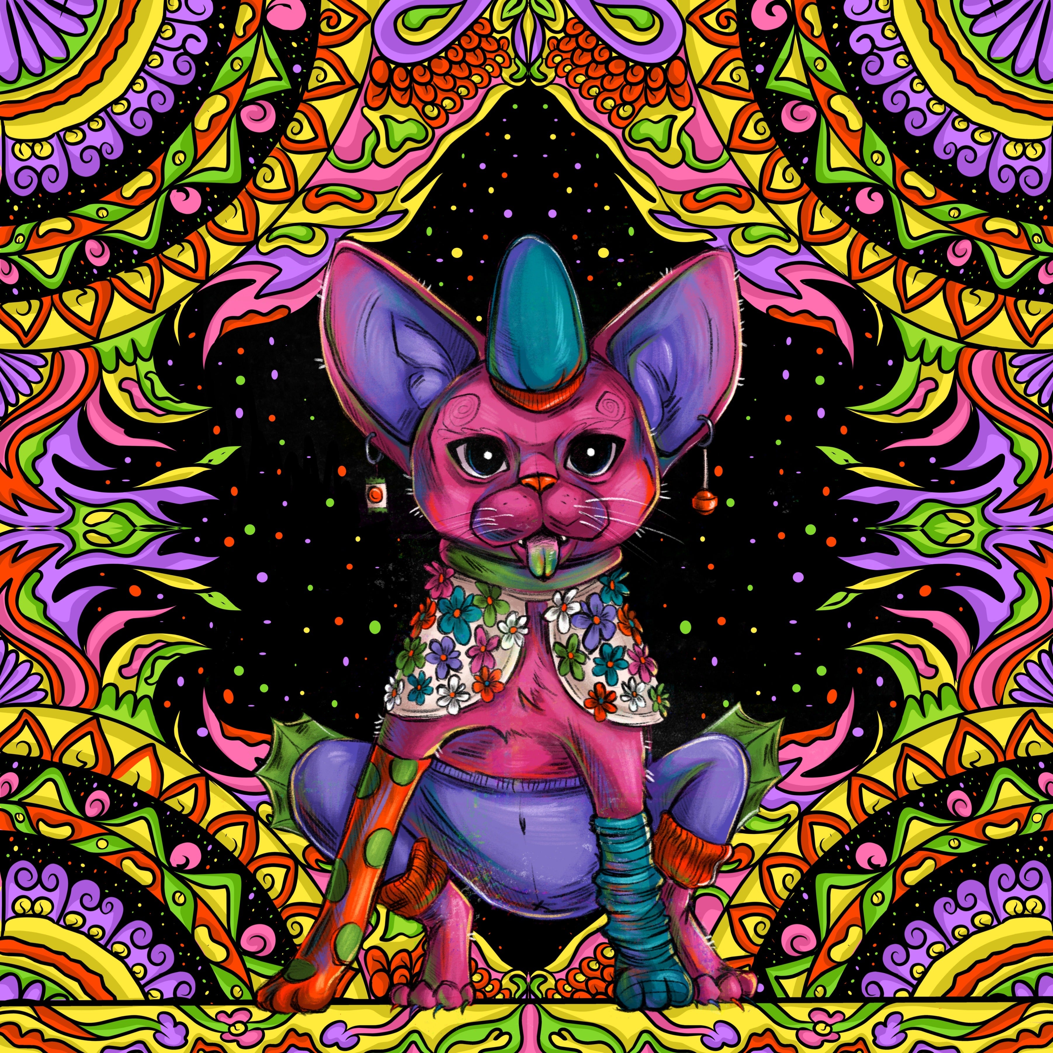 A collaborative artwork between Anastasia NFTart and Sachin: Soapy Cat exploring the beauty of Colorful Wonderland